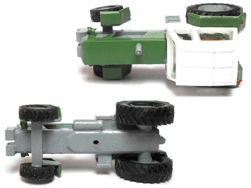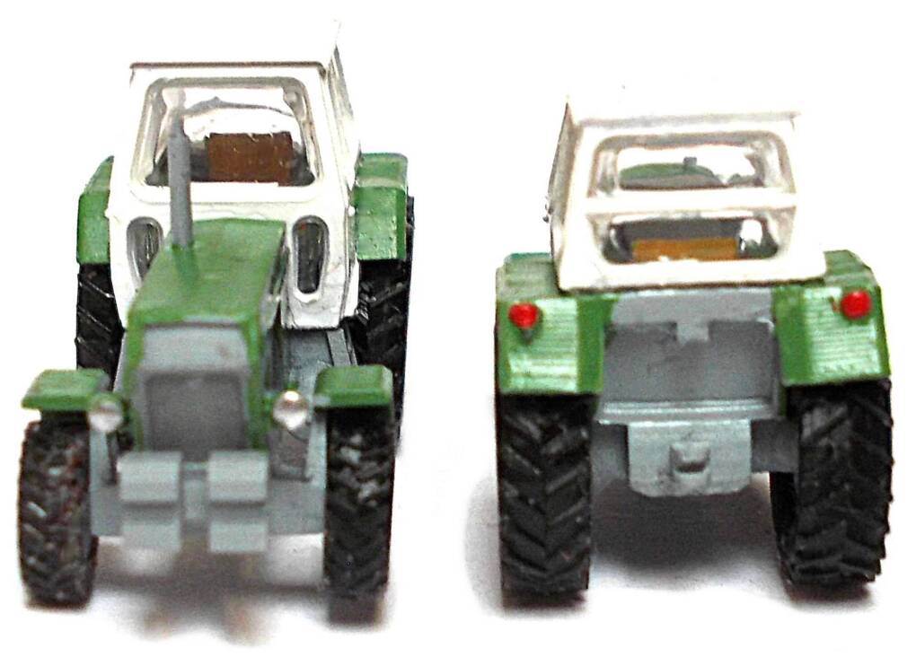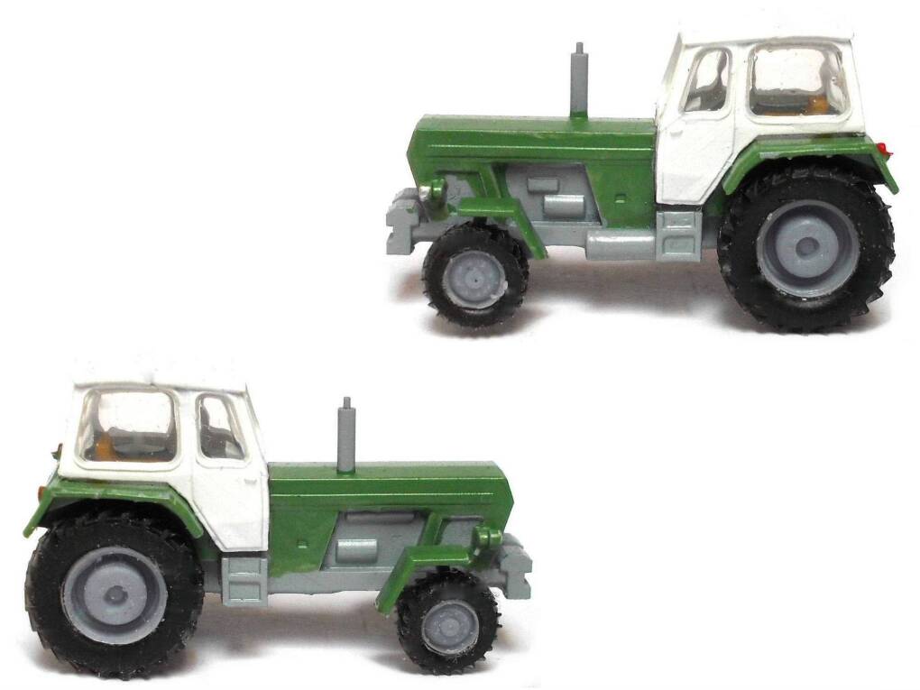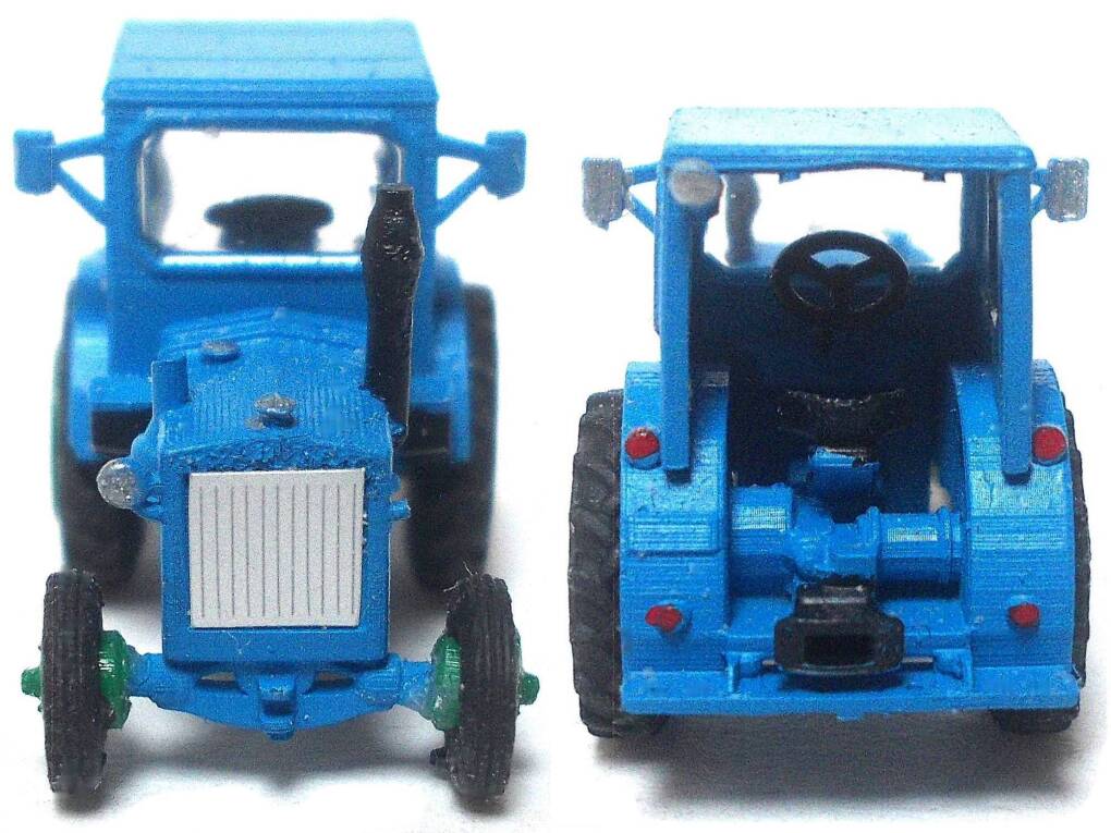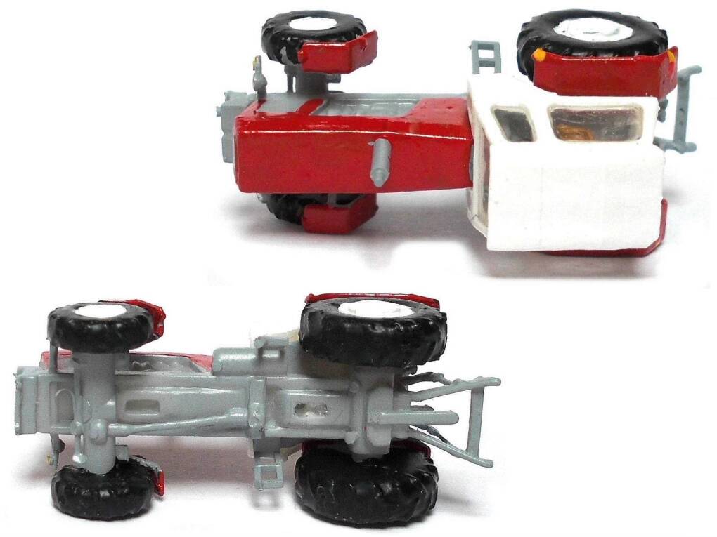Das Modell wurde aus einem Kleinserien- 3D-Druck- Bausatz fertig gebaut, mit Airbrush neu lackiert, farblich in Details verbessert und bekam Fensterscheiben aus Micro Kristal Klear. Das Knickgelenk und die Vorderachse sind schwenkbar gelagert