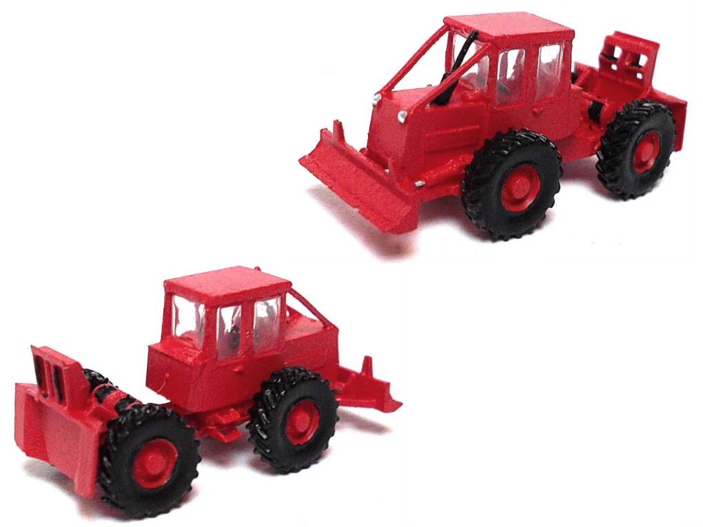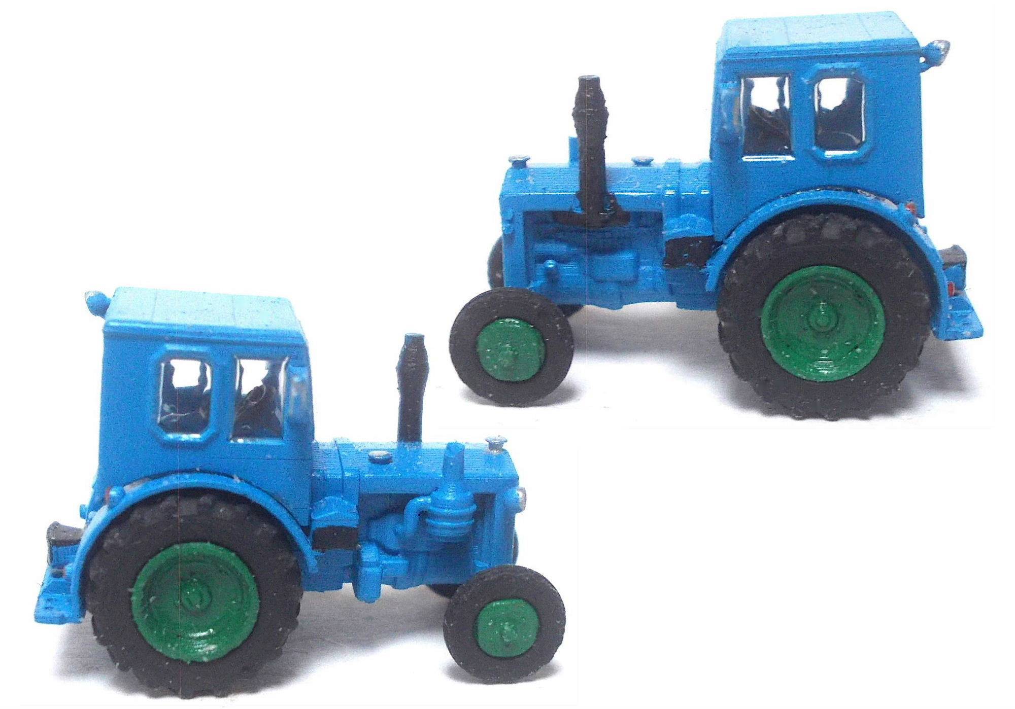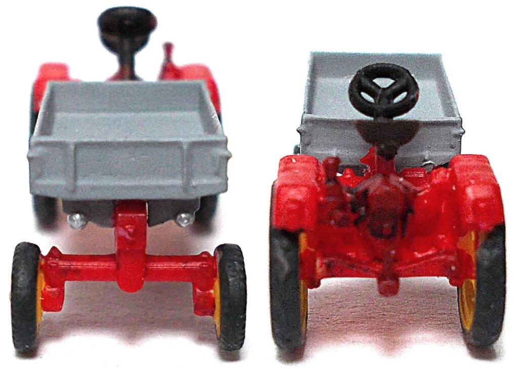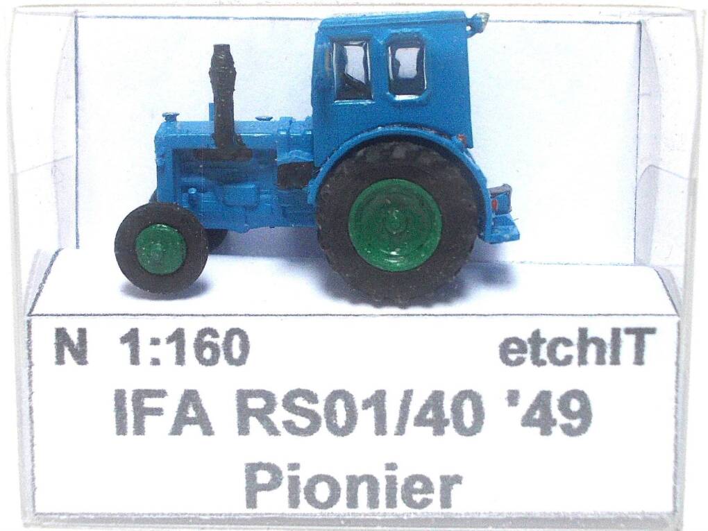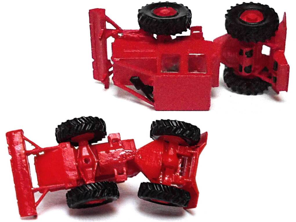 Das Modell wurde aus einem Kleinserien- 3D-Druck- Bausatz fertig gebaut, mit Airbrush neu lackiert, farblich in Details verbessert und bekam Fensterscheiben aus Micro Kristal Klear. Das Knickgelenk und die Vorderachse sind schwenkbar gelagert