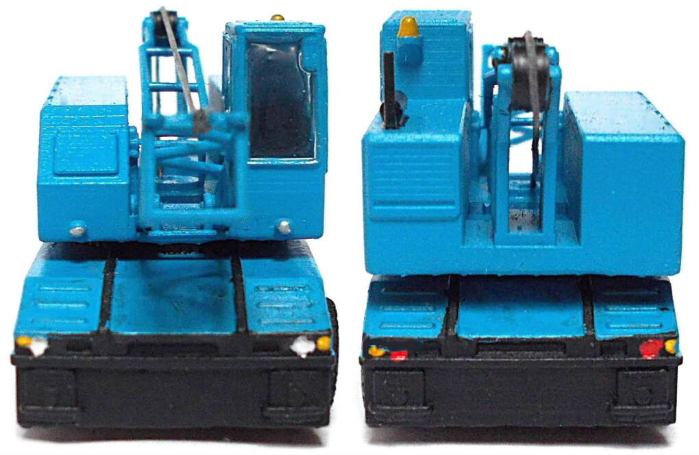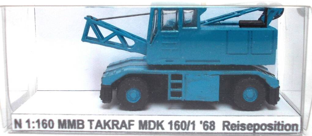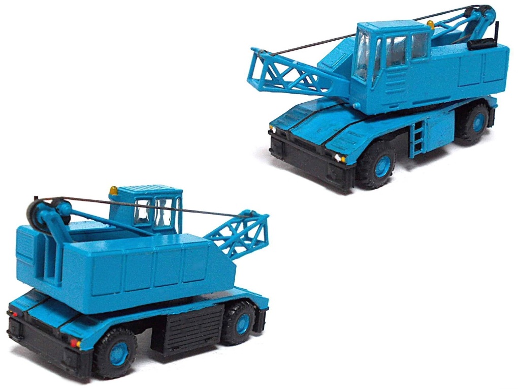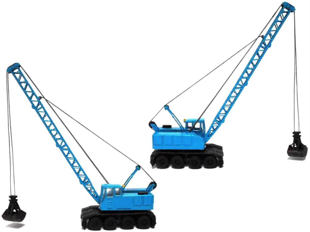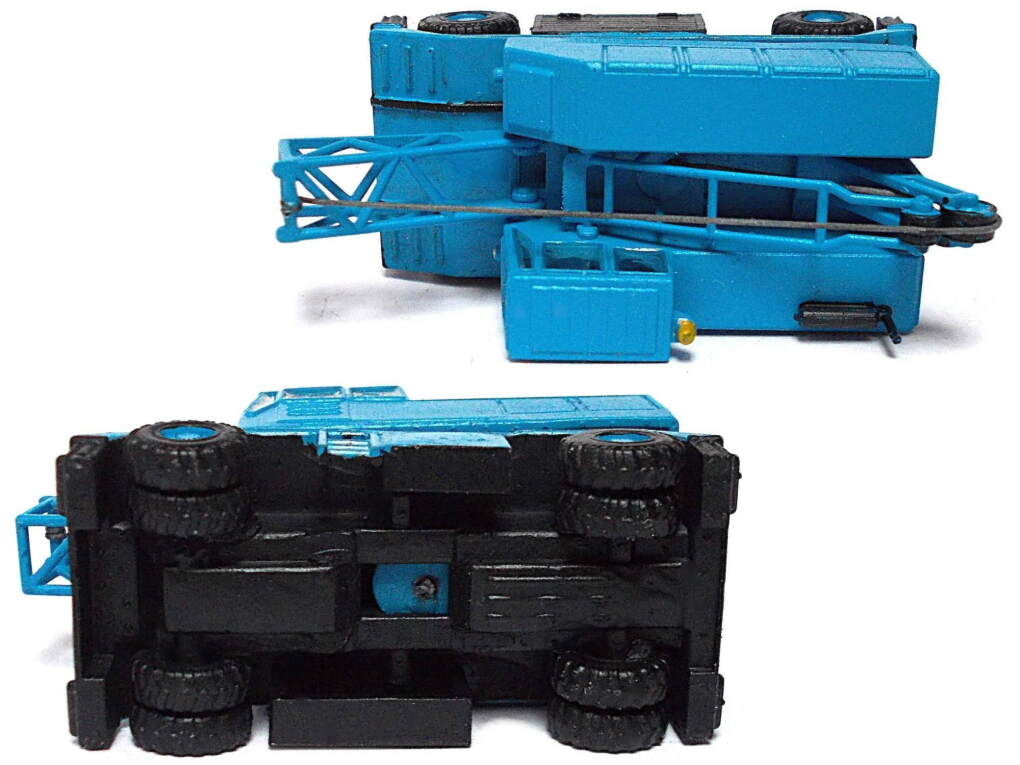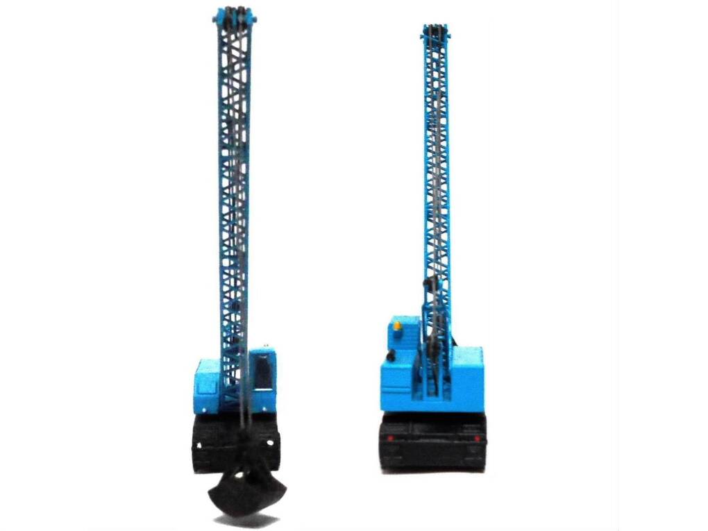 Das Modell wurde aus zwei Kleinserien- 3D-Druck- Bausätzen fertig gebaut, mit Airbrush neu lackiert, farblich in Details verbessert und bekam Fensterscheiben aus Micro Kristal Klear. Der Baggergreifer ist eine Extra- Anfertigung von GeePlast. Der Oberwagen ist frei beweglich.
