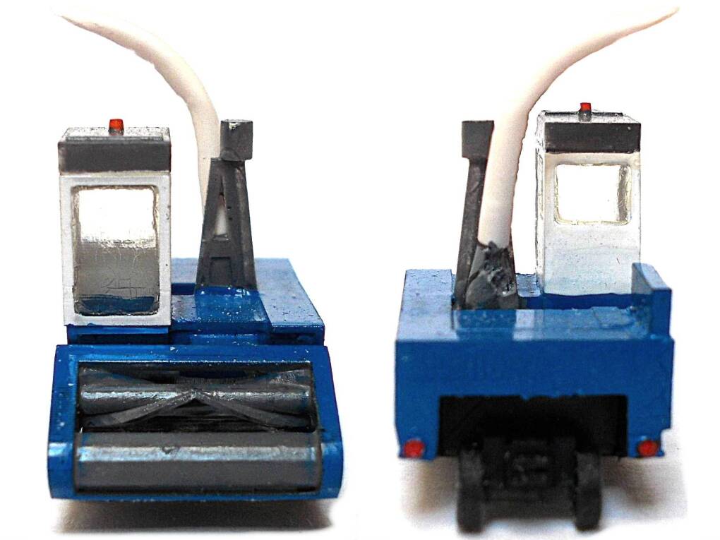 Das Modell wurde aus einem Kleinserien- 3D-Druck- Bausatz fertig umgebaut, mit Airbrush neu lackiert, farblich in Details verbessert und bekam Fensterscheiben aus Micro Kristal Klear. Der Oberwagen ist frei beweglich.