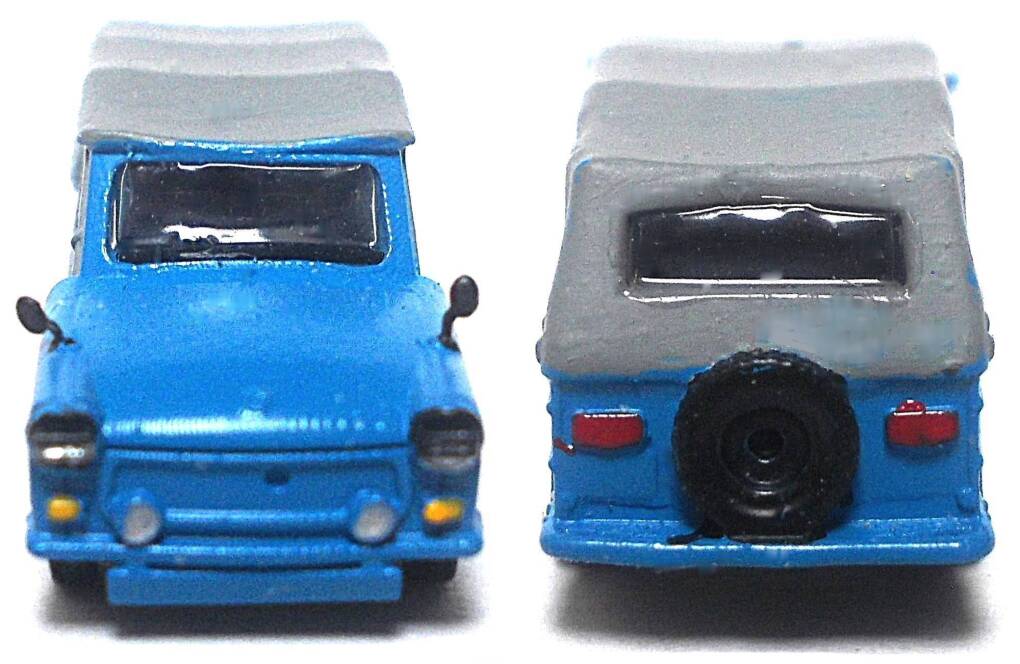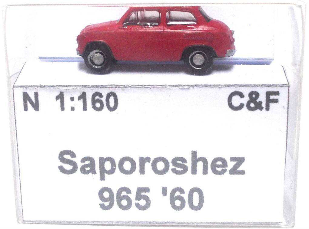 Das Modell wurde aus einem Kleinserien- 3D-Druck- Bausatz fertig gebaut, mit Airbrush neu lackiert und farblich in Details verbessert. Der Saporoshez SAS 965 wurde auch in Belgien als Jalta ZAZ 850, in der Niederlande, Dänemark und Finland als ZAZ Yalta 850 und in Österreich als ZAZ Eliette verkauft. In Belgien wurde er von Scaldia-Volga auch montiert. Das Modell ist in einer Klarsichtschachtel mit Kartoneinlage sicher verpackt.