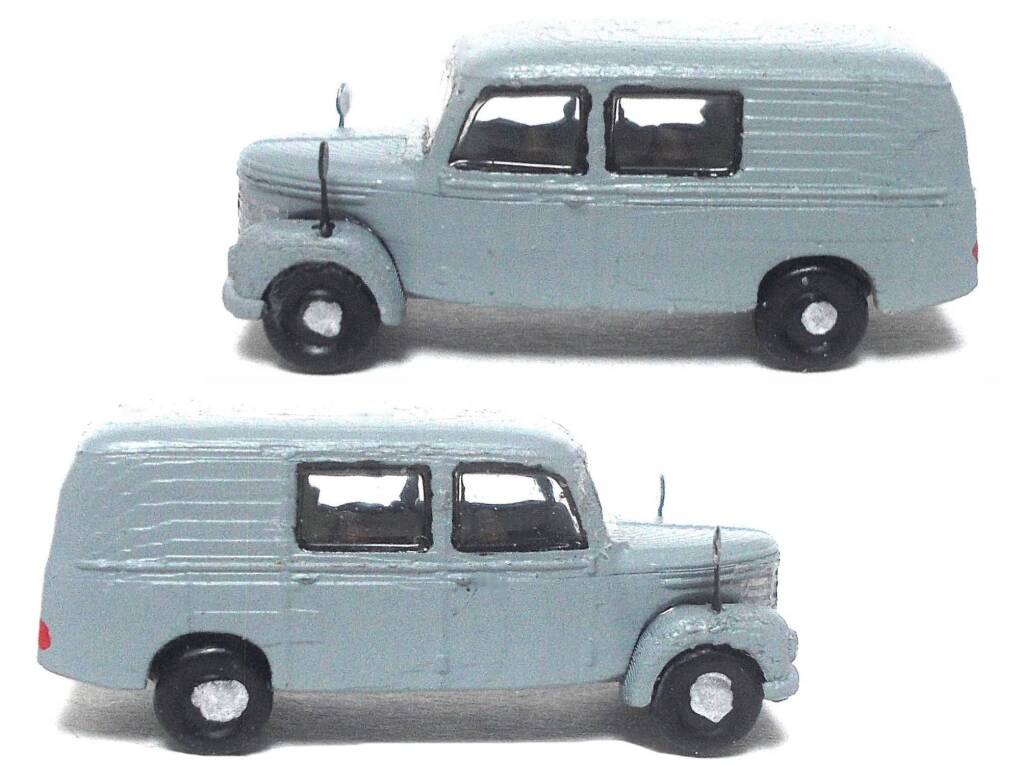 Das Modell wurde aus einem Kleinserien- 3D-Druck- Bausatz fertig gebaut, mit Airbrush neu lackiert, farblich in Details verbessert und bekam Fensterscheiben aus Micro Kristal Klear und Rückspiegel von FKS. Das Modell ist in einer Klarsichtschachtel mit Kartoneinlage sicher verpackt.