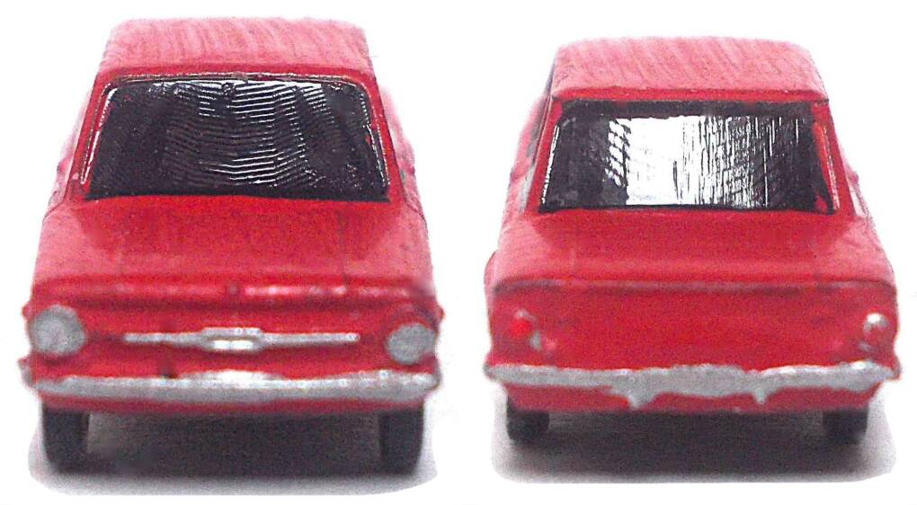 Das Modell wurde aus einem Kleinserien- 3D-Druck- Bausatz fertig gebaut, mit Airbrush neu lackiert und farblich in Details verbessert. Der Saporoshez SAS 968 wurde auch in Belgien als Jalta ZAZ 968, in der Niederlande, Dänemark und Finland als ZAZ Yalta 968 und in Österreich als ZAZ Eliette verkauft. In Belgien wurde er von Scaldia-Volga auch montiert, da aber teilweise mit dem Motor des Renault 8 und hieß dann Jalta 1000. Das Modell ist in einer Klarsichtschachtel mit Kartoneinlage sicher verpackt.