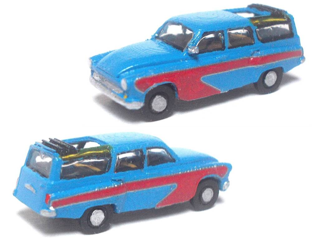 Das Modell wurde aus einem Kleinserien- 3D-Druck- Bausatz fertig gebaut, mit Airbrush neu lackiert, farblich in Details verbessert, bekam Fensterscheiben aus Micro Kristal Klear, Decals und feine geätzte Rückspiegel. Das Modell ist in einer Klarsichtschachtel mit Kartoneinlage sicher verpackt.