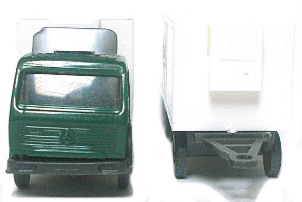 Das Modell wurde aus einem Kleinserien- 3D-Druck- Bausatz eines Schienen-LKW umgebaut, mit Airbrush neu lackiert, farblich in Details verbessert, bekam Fensterscheiben aus Micro Kristal Klearund bekam Decals. Der Kühlkofferaufbau von etchIT-Modellbau, ist ein 3D-gedrucktes Modell mit Airbrush neu lackiert.