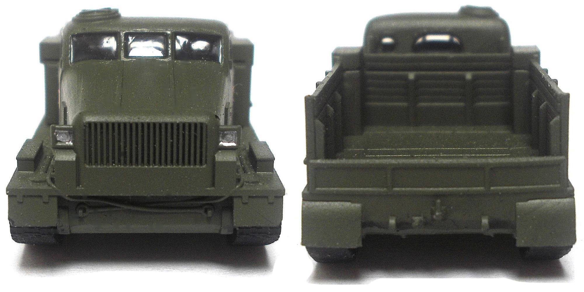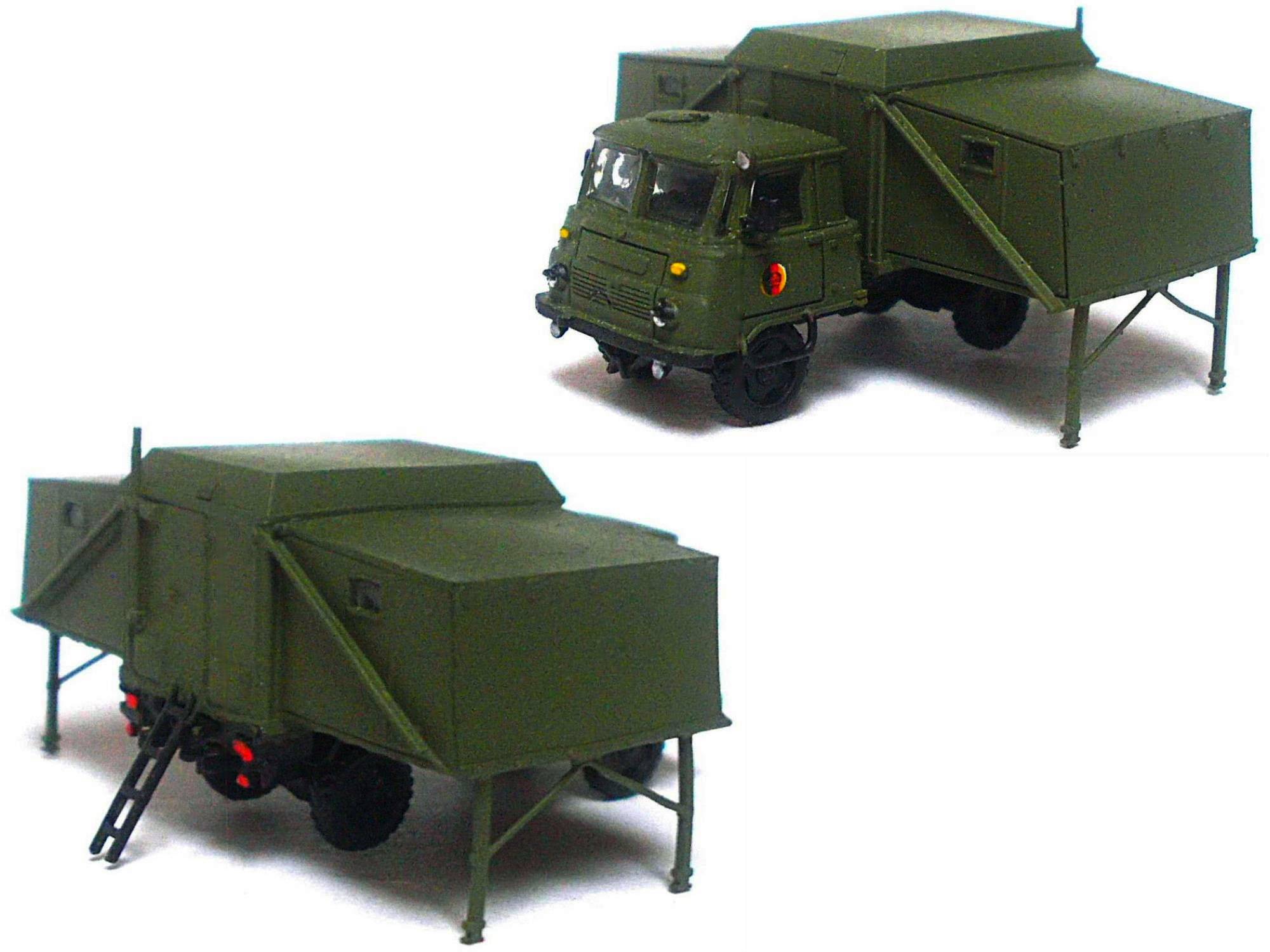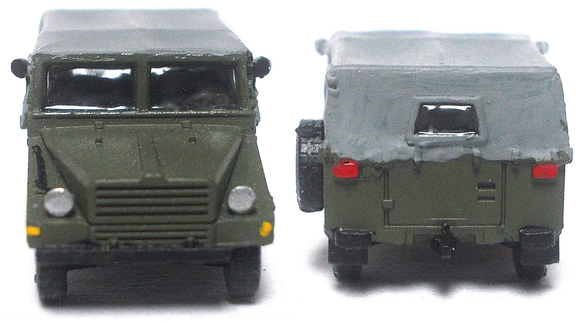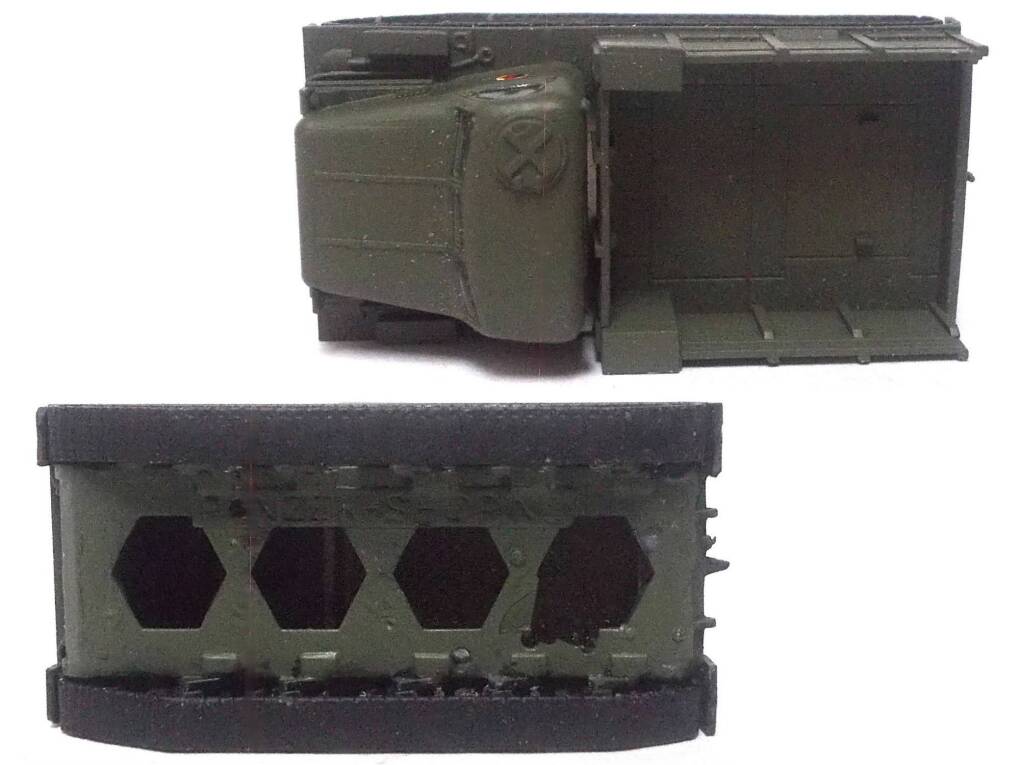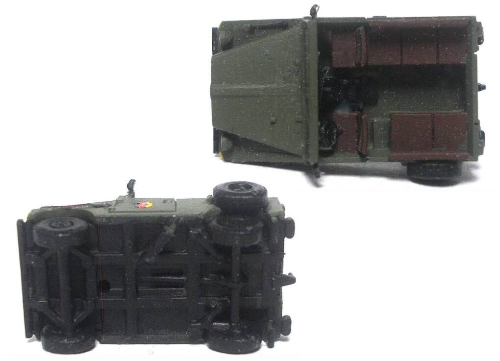Der LKW wurde aus einem Kleinserien- 3D-Druck- Bausatz fertig gebaut, mit Airbrush neu lackiert, farblich in Details verbessert, bekam Fensterscheiben aus Micro Kristal Klear und Decals.